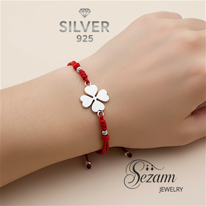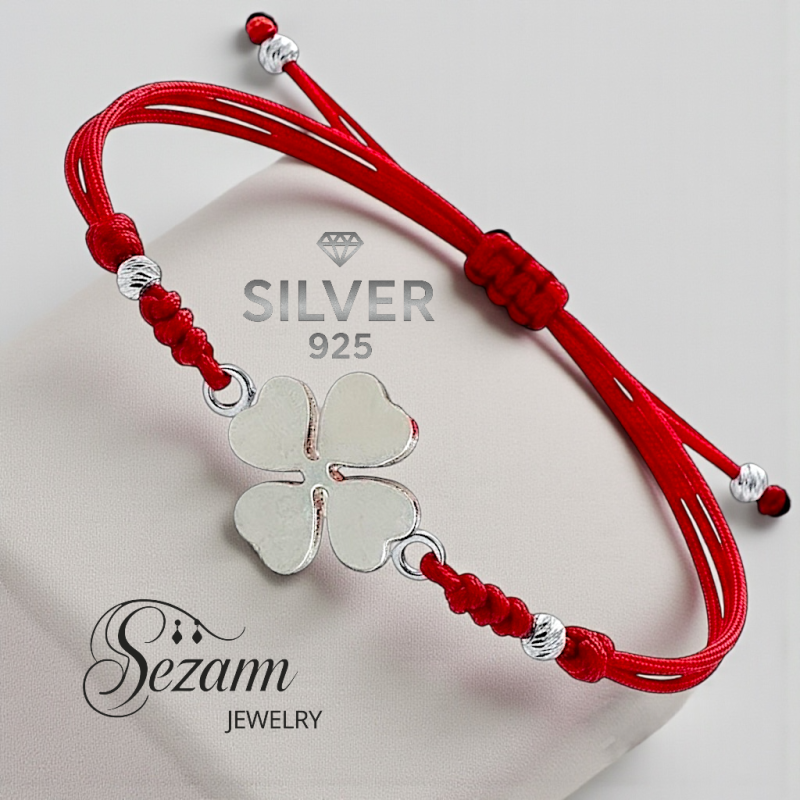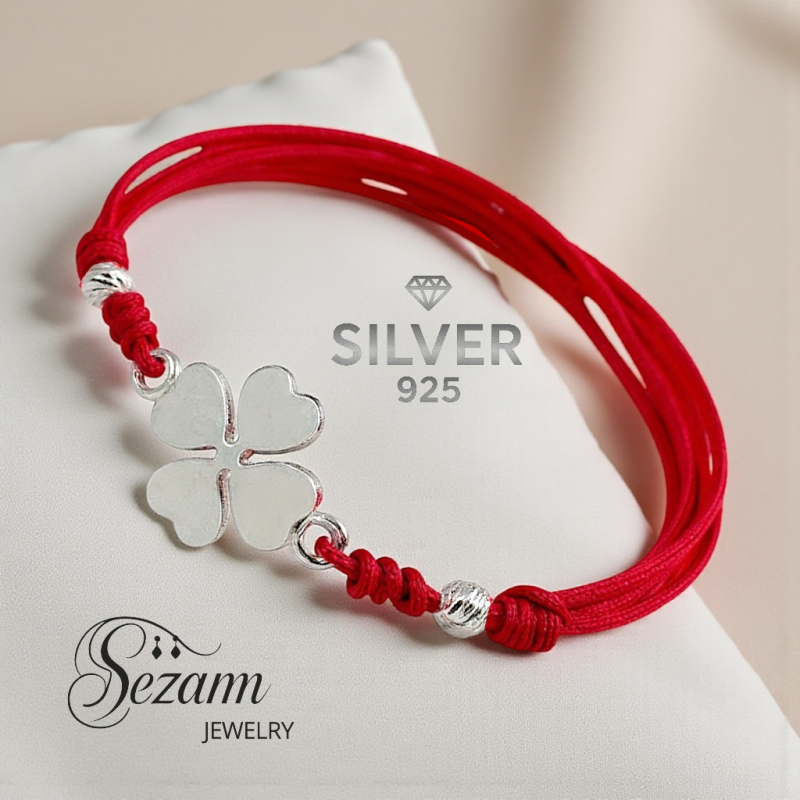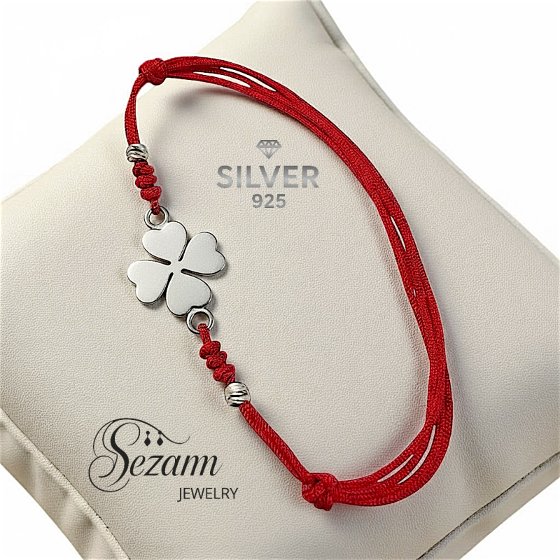 - ❤️ Гривна с червен макраме конец и сребърна четирилистна детелина – Silver 925 & ръчна изработка