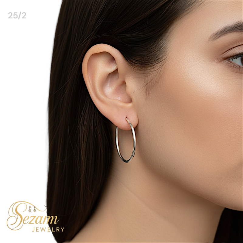Сребърни обеци халки – 25 мм диаметър, 2 мм ширина